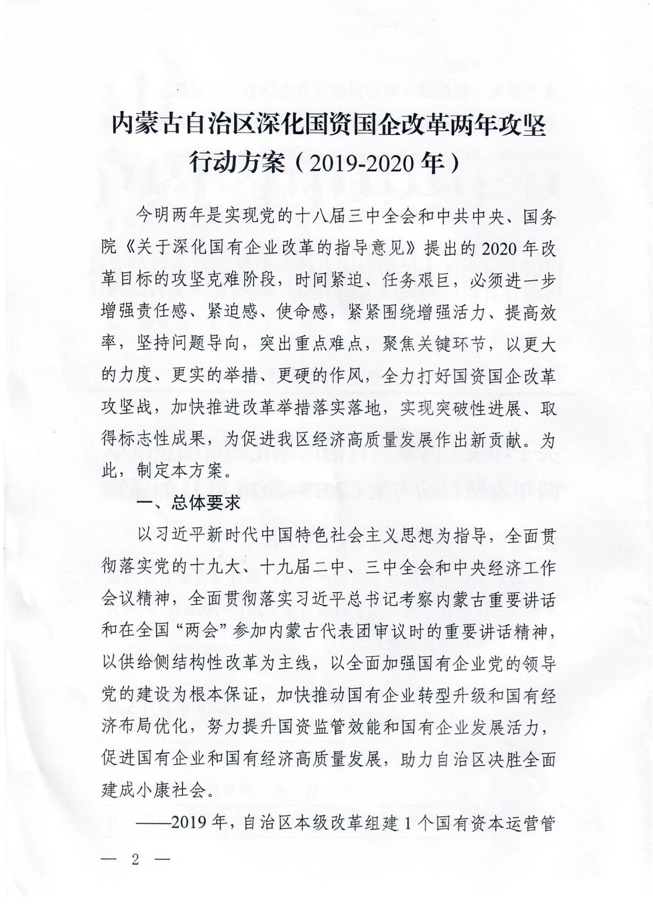 經(jīng)自治區(qū)人民政府有關(guān)領(lǐng)導(dǎo)同意,現(xiàn)將《內(nèi)蒙古自治區(qū)深化國資國企改革兩年攻堅行動方案(2019年-2020年)》印發(fā)給你們,請認(rèn)真貫徹執(zhí)行。